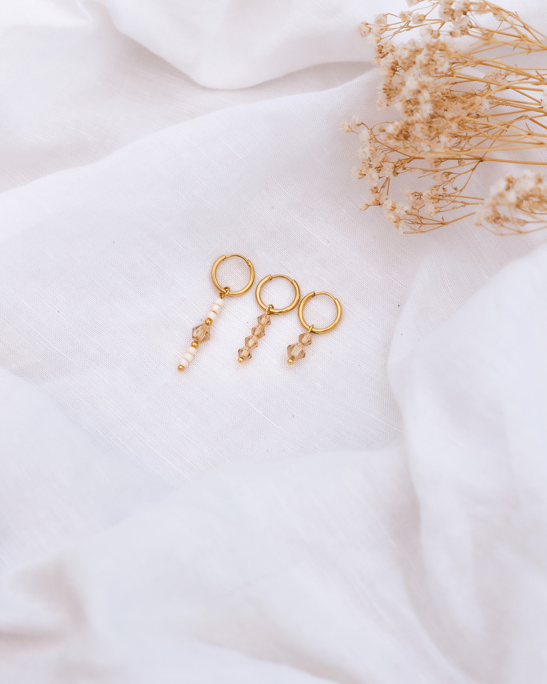 These adorable beaded earrings are a true eye catcher for summer! Pick a neutral beige for your everyday looks, or go for color to perfectly match with that outift! The Miley earrings are made with stainless steel materials and hang on a hypoallergenic hoop. They match lovely with our Liv/Livia earrings if you have multiple piercings!