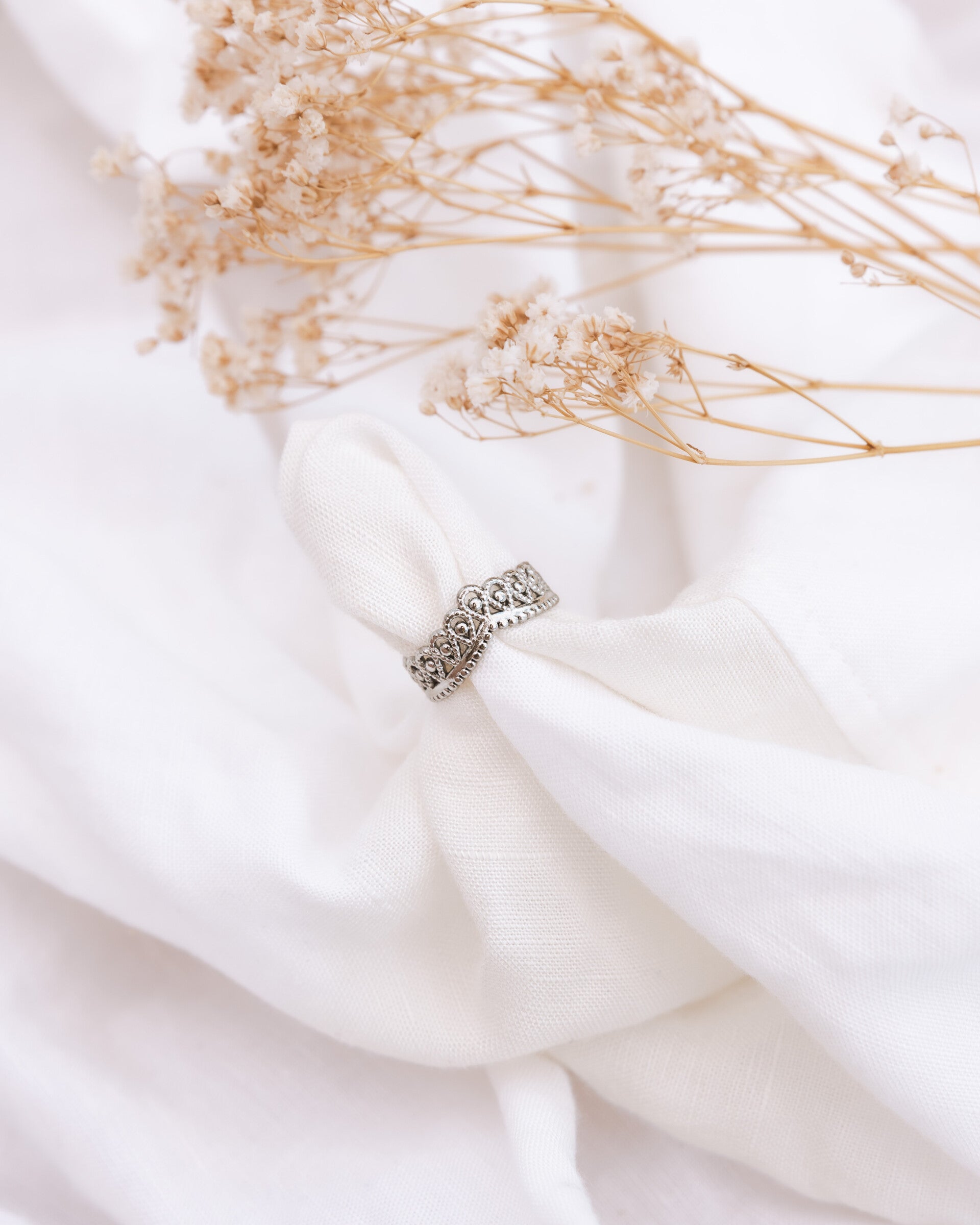 For our real princesses we have a special, crown looking ring that can be worn two ways! Mix and match with other rings to make your hands look like royalty! This stainless steel princess ring is fully adjustable to any ring size and available in both gold & silver.