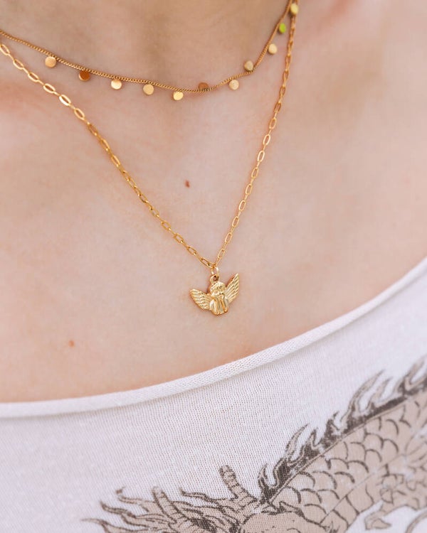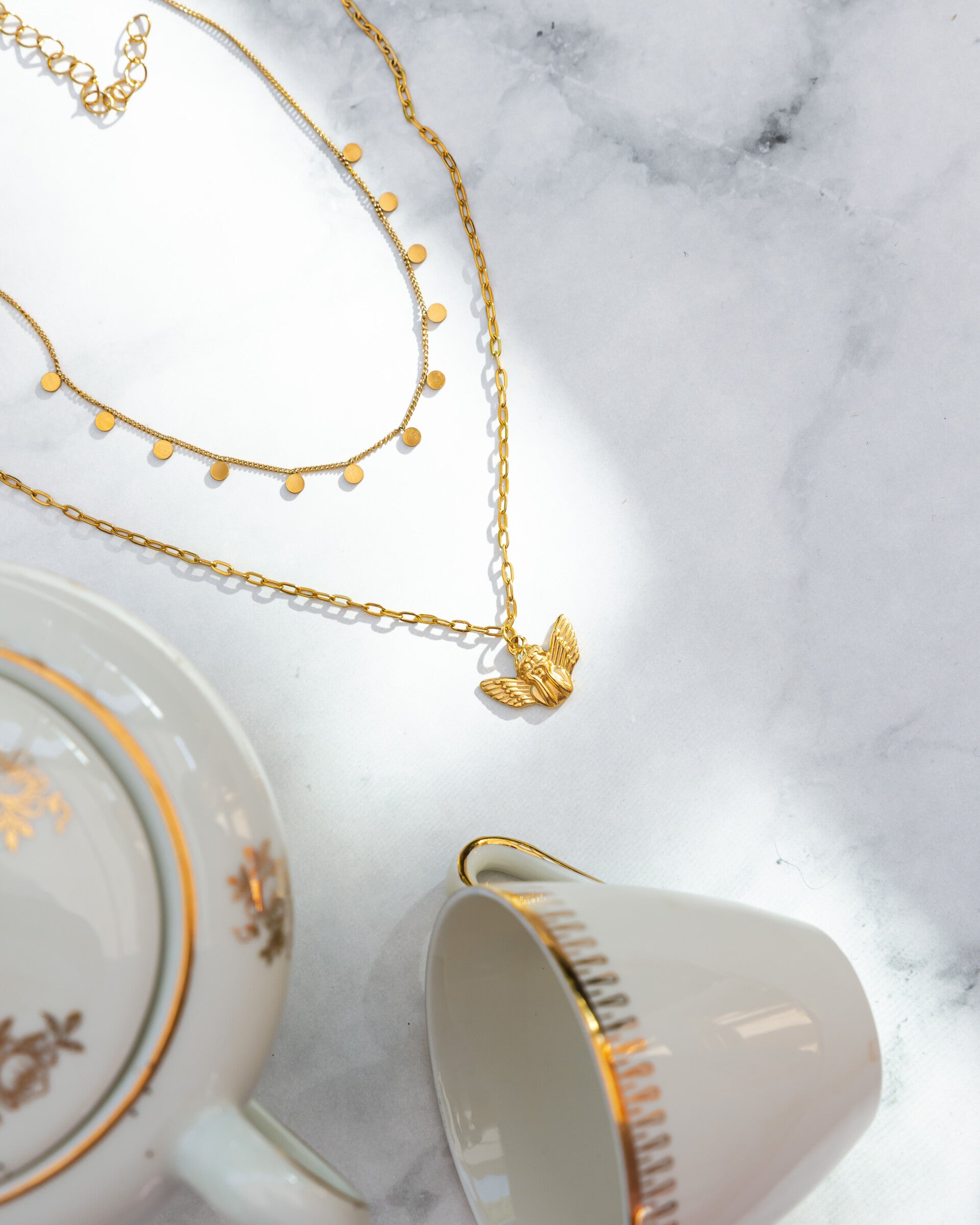 The Angel necklace is versatile and suitable for any occasion! Made with stainless steel materials for the longest last! The centerpiece of this necklace is a beautifully detailed angel pendant, a true must have for any jewelry lover! Available in both gold & silver!