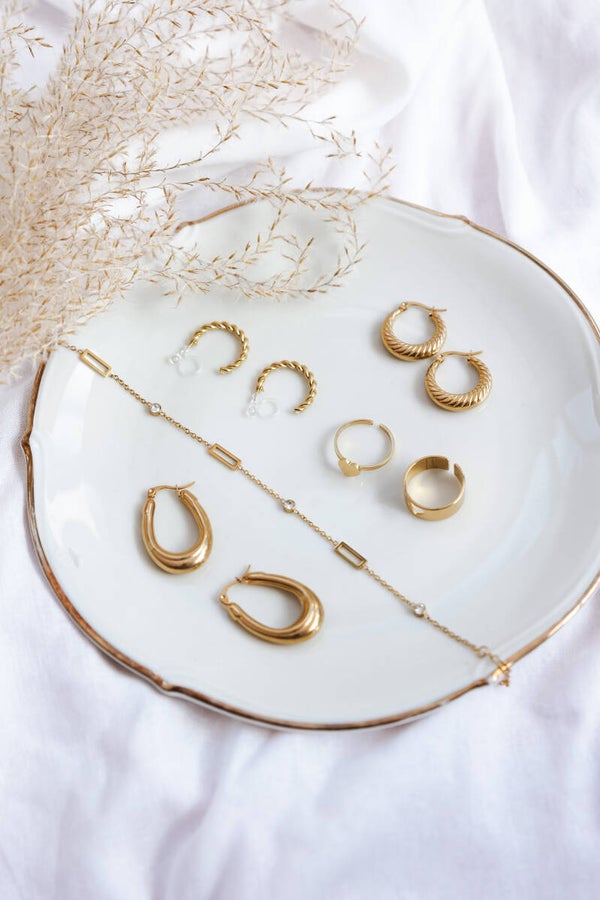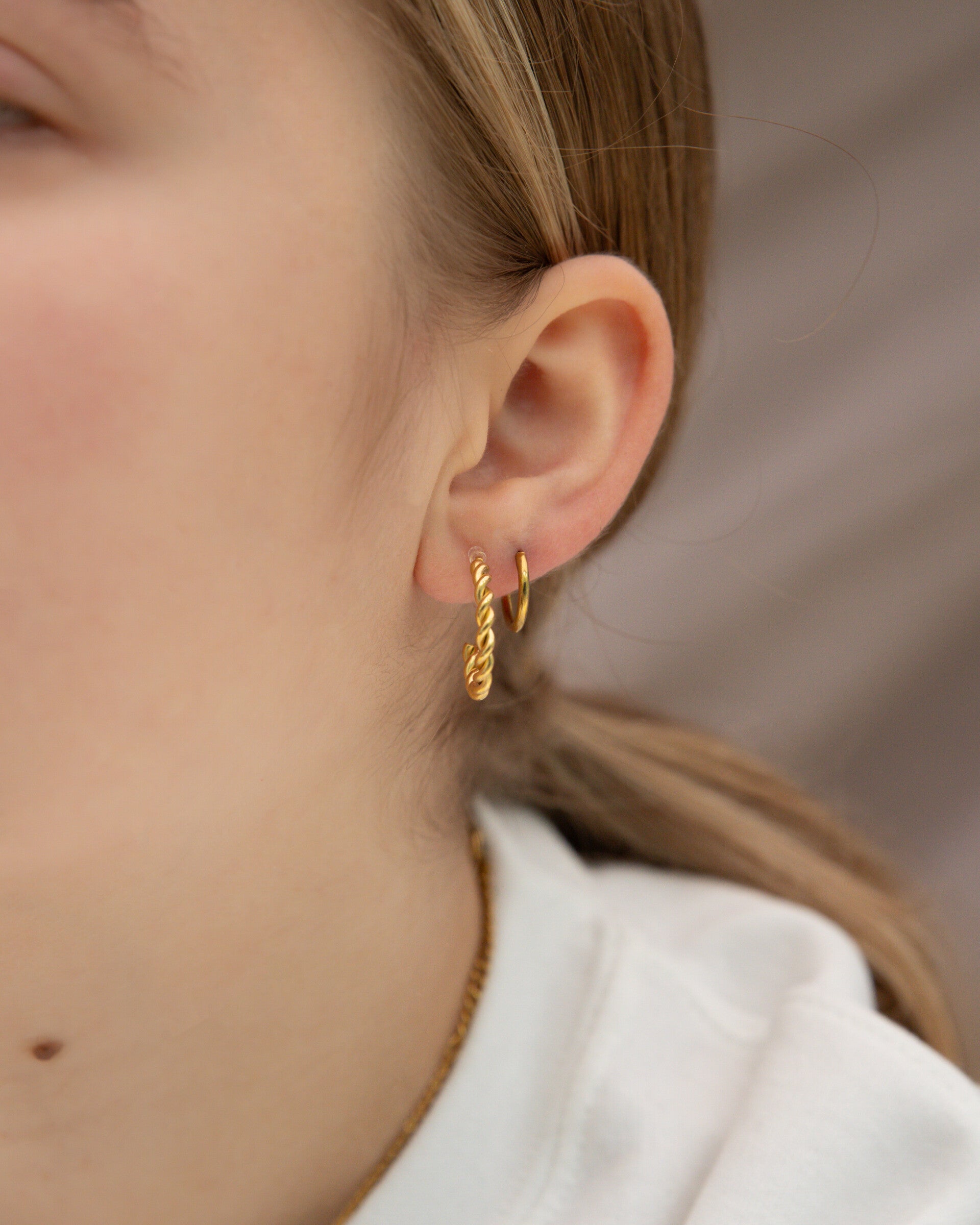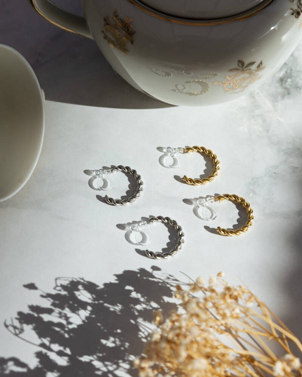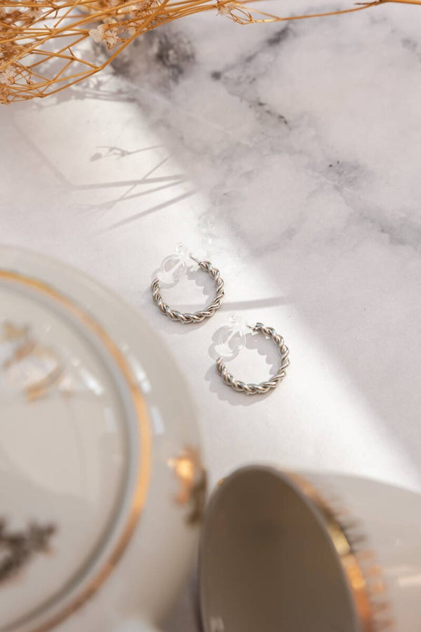These earrings are specially designed for people without any piercings, or people who have only one and don't want the commitment of a second piercing! These trendy twisted hoops can be easily clipped onto the lobe for comfortable & pain free wear! Available in both gold & silver!