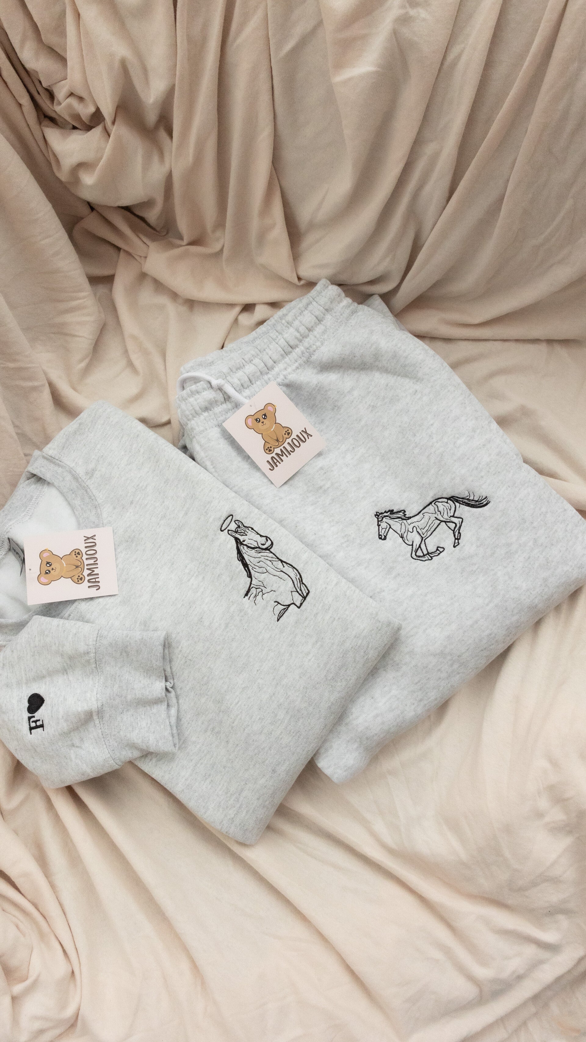 This design can be put on a hoodie, sweater or joggers in any preffered color. Want custom colors for the threads/sweaters? Or looking for a different size? Send us a message through Instagram for the fastest response! While we try to keep all sizes and colors in stock this can be hard to predict, so if your chosen item is not in stock it will have to be ordered. Stock will be discussed before payment as it can increase shipment times.