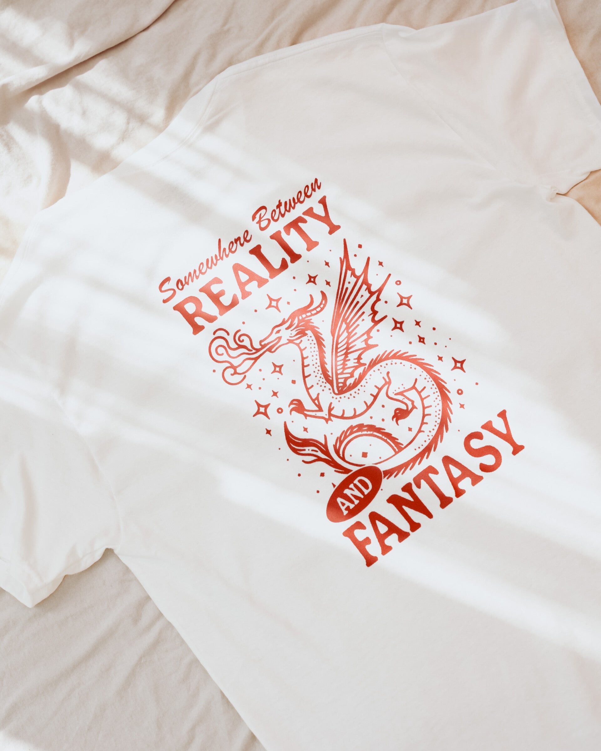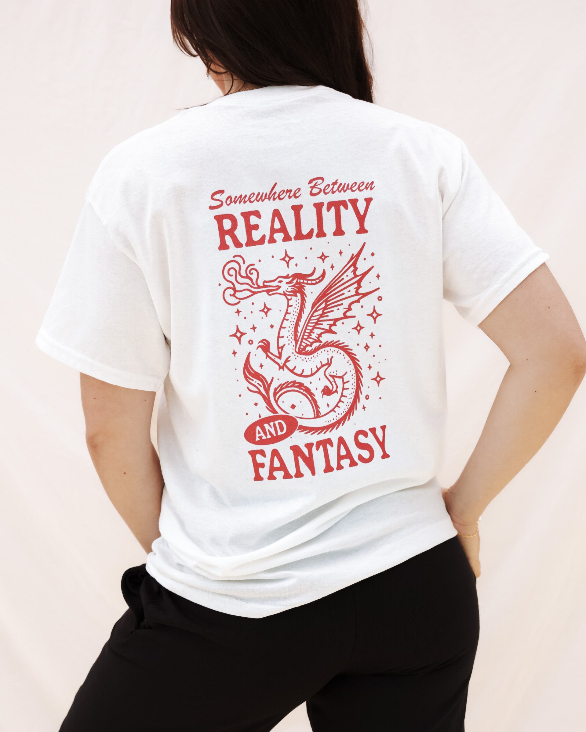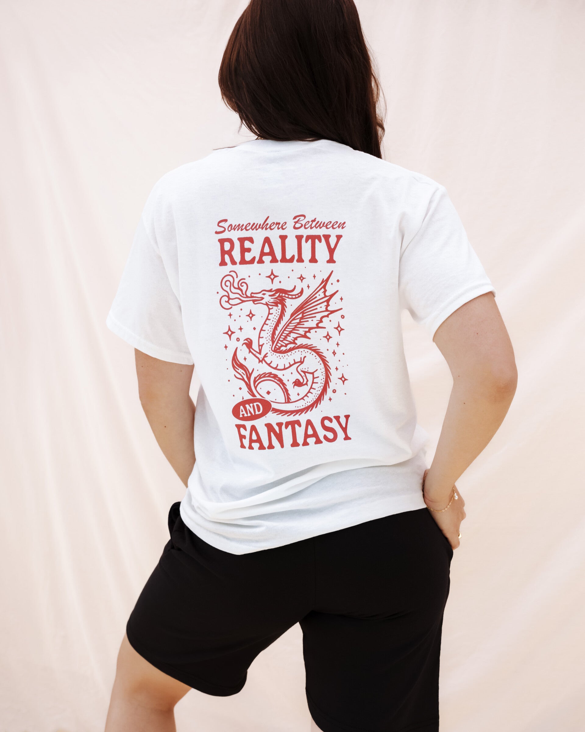 Step into a world of imagination with our "Between reality and fantasy" tee! This shirt will be adding a touch of magic to your everyday wear!