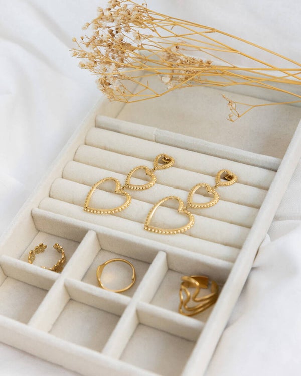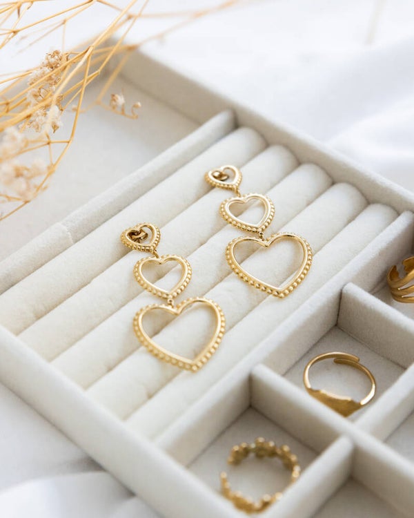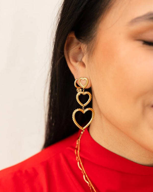 Love that gets bigger and bigger! These heart outline earrings start small at the top and grow larger towards the bottom, with a subtle texture running along the edge for that extra touch! Made of light materials, so they won't hurt your ears!