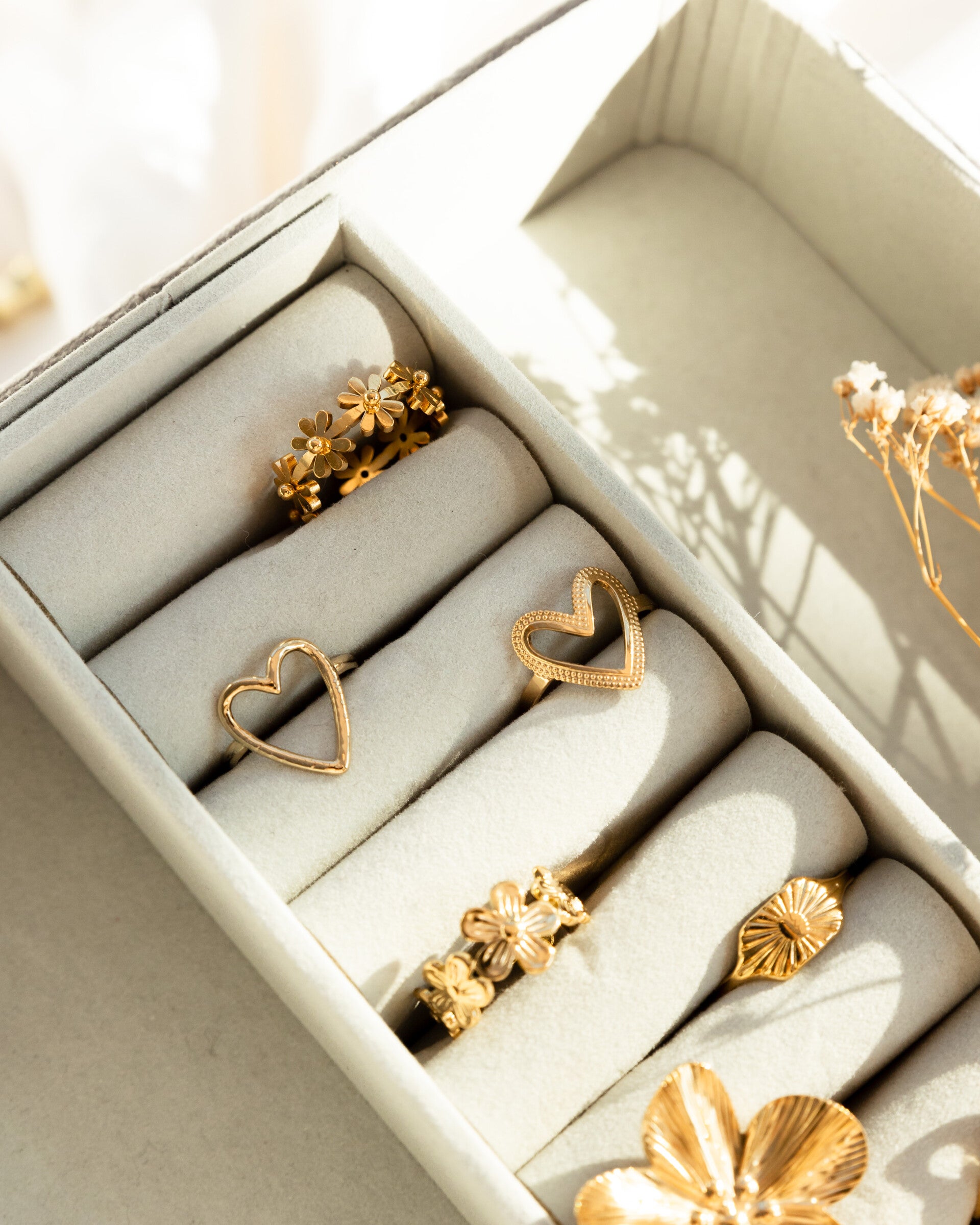 if you love the Floral crush hoops, you’re going to adore this! A dainty ring featuring the same delicate metal flowers, linked together to wrap beautifully around your finger. Looking for some matching earrings? Check out our Floral Crush hoops! Only available in gold (for now!)