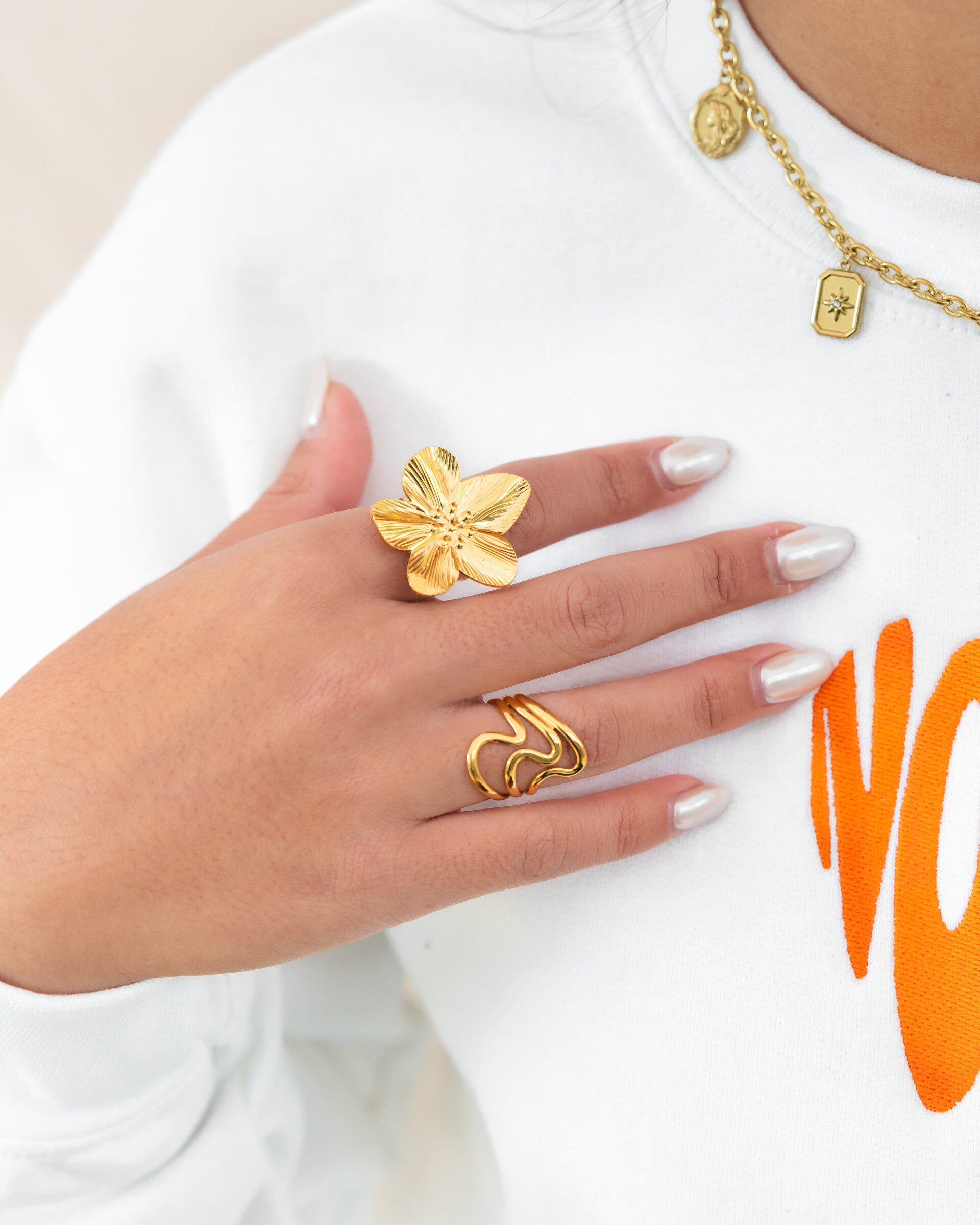 Three soft, flowing waves wrap around your finger in this gold beauty. The waves follow each other closely but have their own unique curves, creating a dreamy, organic look! Currently only available in gold!
