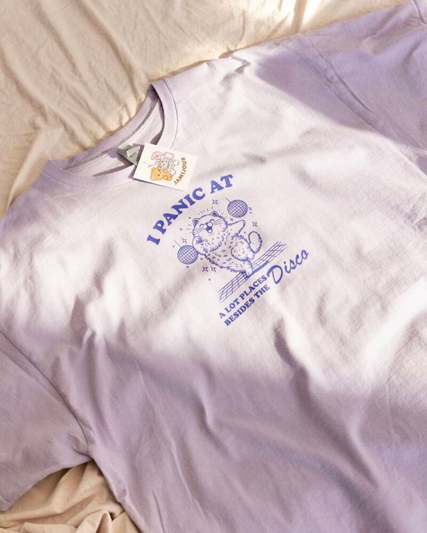 For the overthinkers, the anxious cuties, and the ones who truly panic everywhere except the disco! This tee features an groovy little cat at the disco, surrounded by glittering disco balls and tiny stars! A cute but painfully relatable design for those who always have 17 tabs open in their brain!