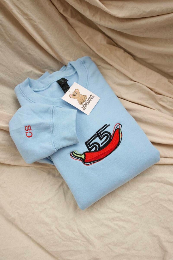 This embroidered design features a bold red chili pepper and his iconic number 55 stitched right above! The abstract detailing around the pepper adds movement and makes the whole piece pop!