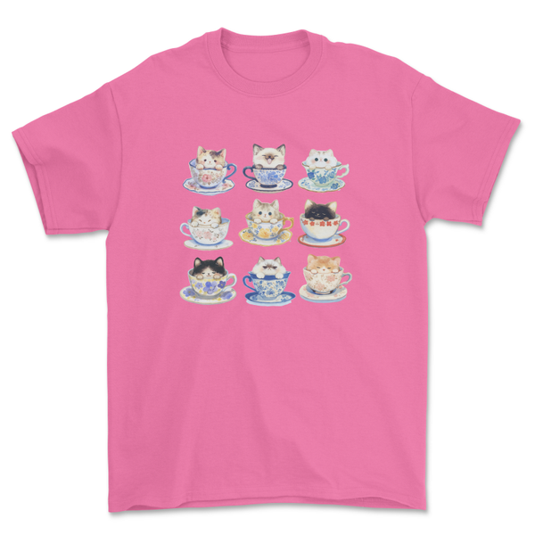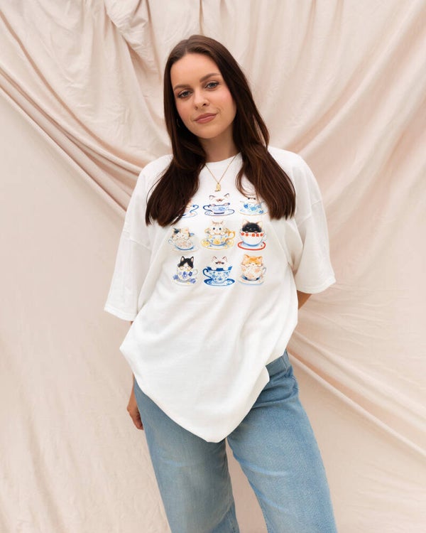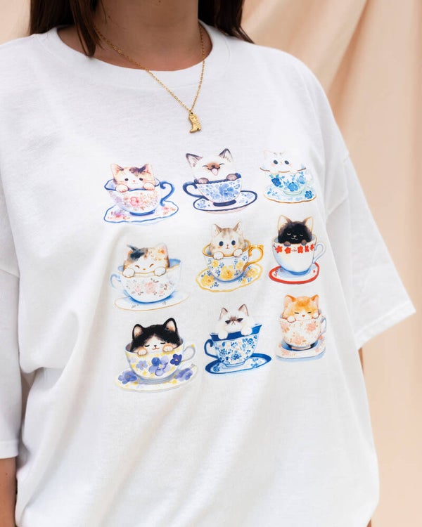 Nine cats, nine cups, endless cuteness! This adorable watercolor-style design features a full tea party of the fluffiest kitties! Can’t pick a favorite? Go for the full 9-piece print! Want just one kitty up front and the rest on the back? It’s your cup of tea!