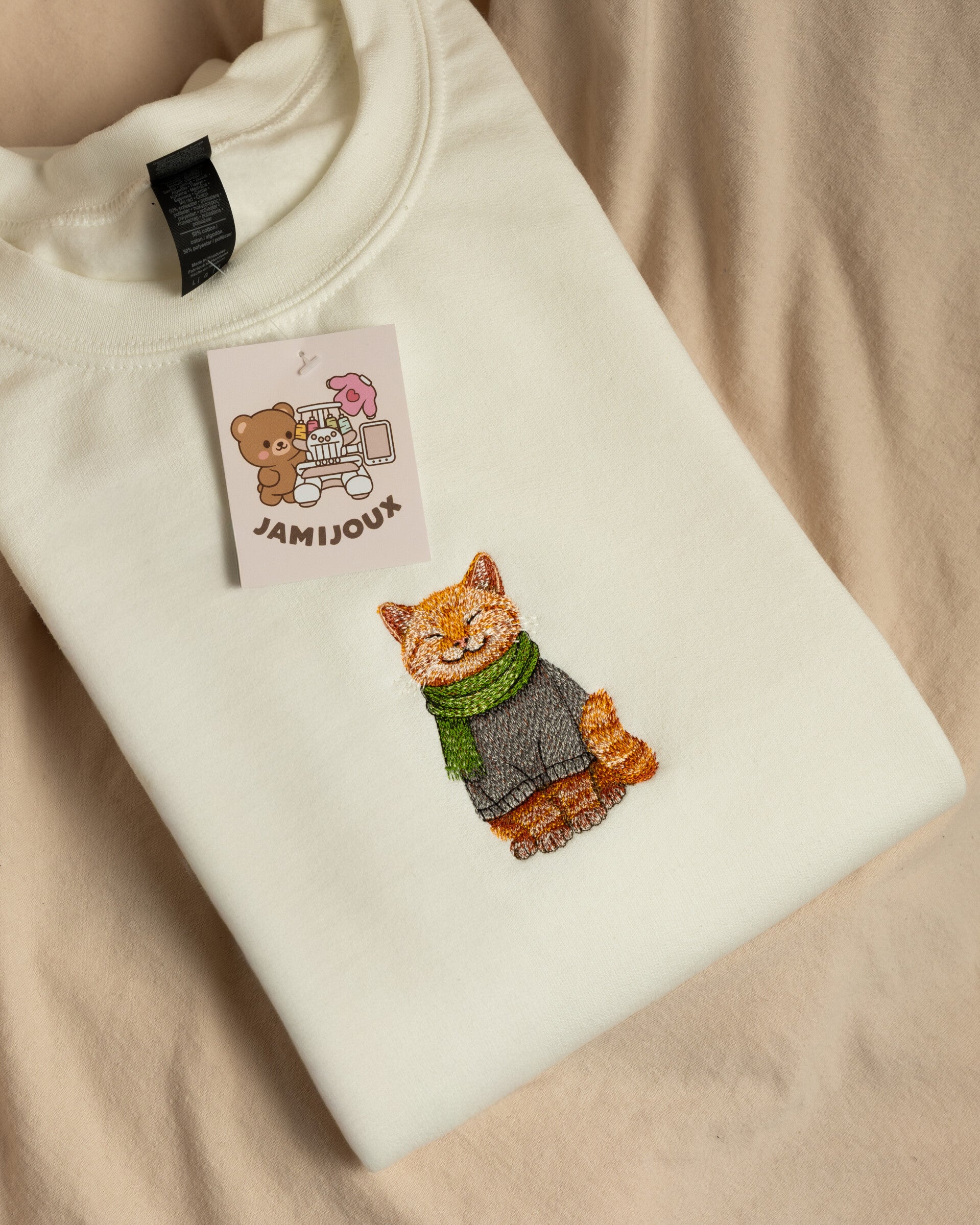 The cozy kitty design is our most realistic design yet! Built up in many layers of threads, creating this adorable cozy result! You are able to pick your own colors for the sweater (one light & one darker), and the scarf! (also one light & one darker)