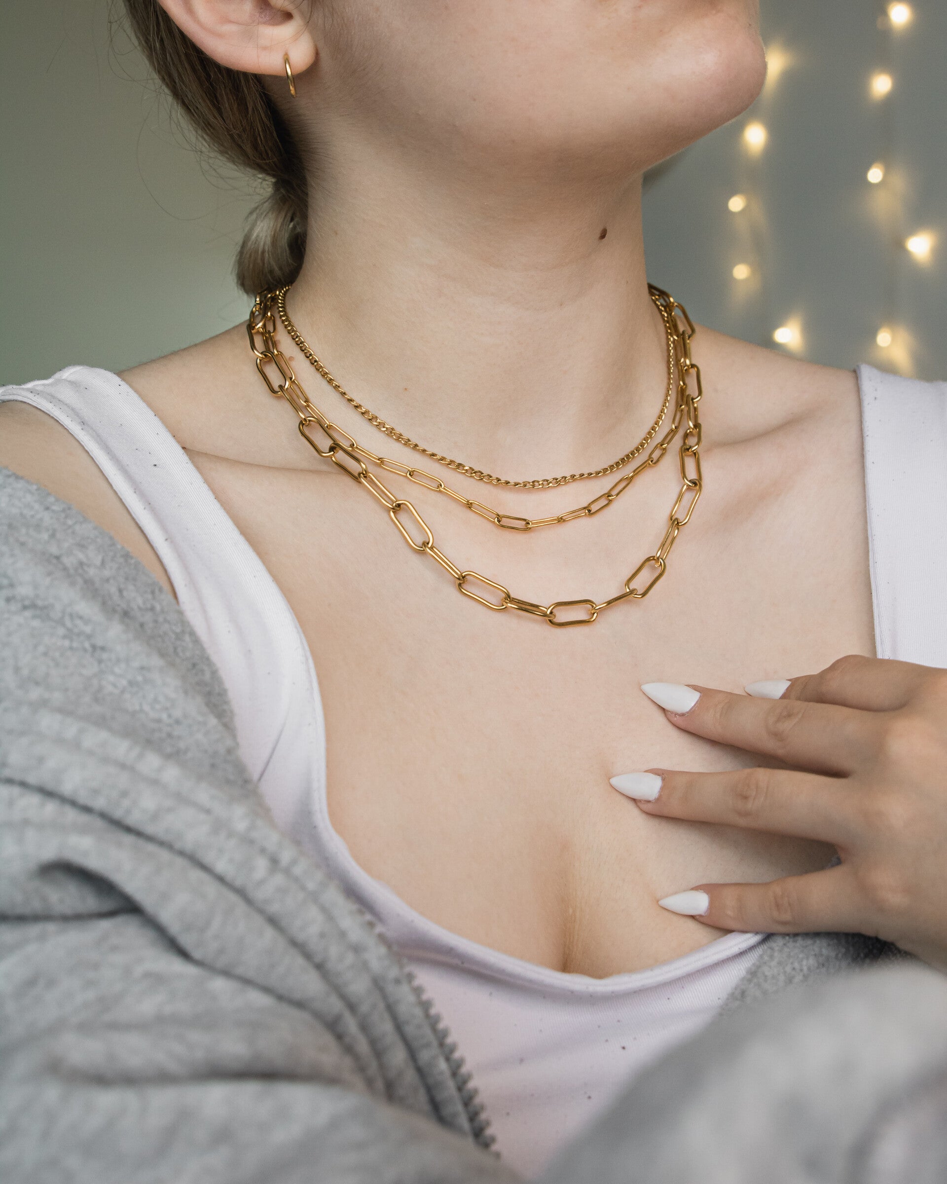 This simple chain set is a lovely to combine with some pearl earrings! You can wear them as a set or mix and match! You can also purchase these 3 chains seperatly, available in gold & silver