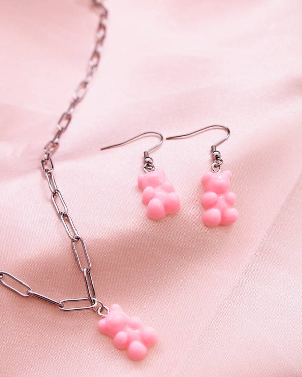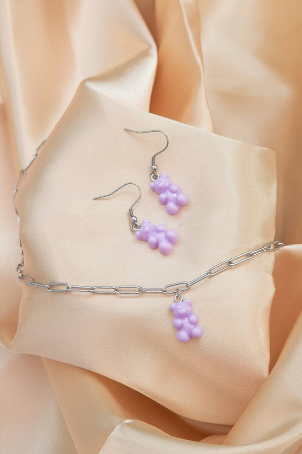 This jewelry set is for our sugar lovers. The Gummy bear chain & earrings make a super colorful set to make any outfit pop!