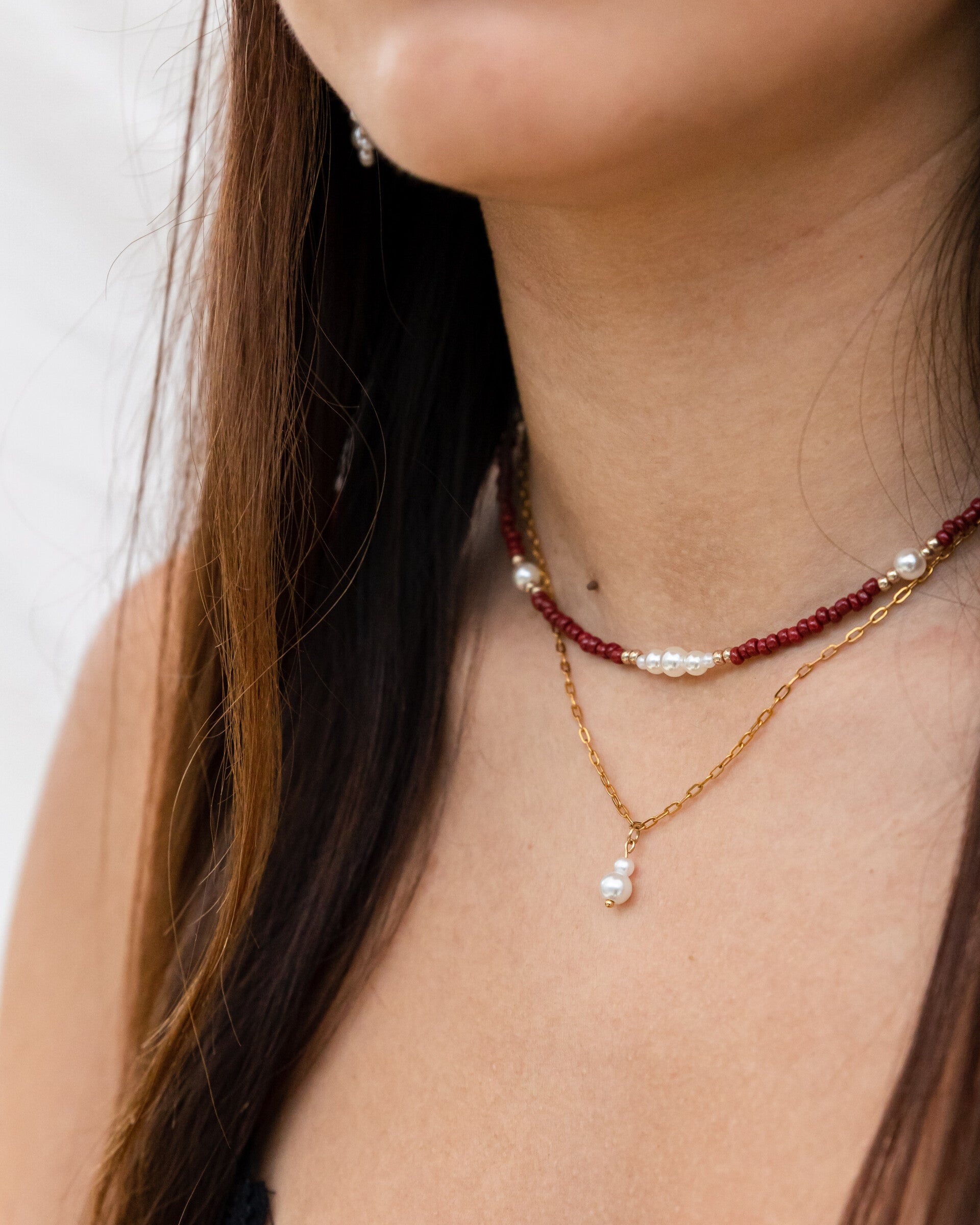 The Caroline beaded necklaces are the perfect holiday necklaces! in 3 festive colors and made with beautiful pearls to finish it up! Can be made with gold & silver details!