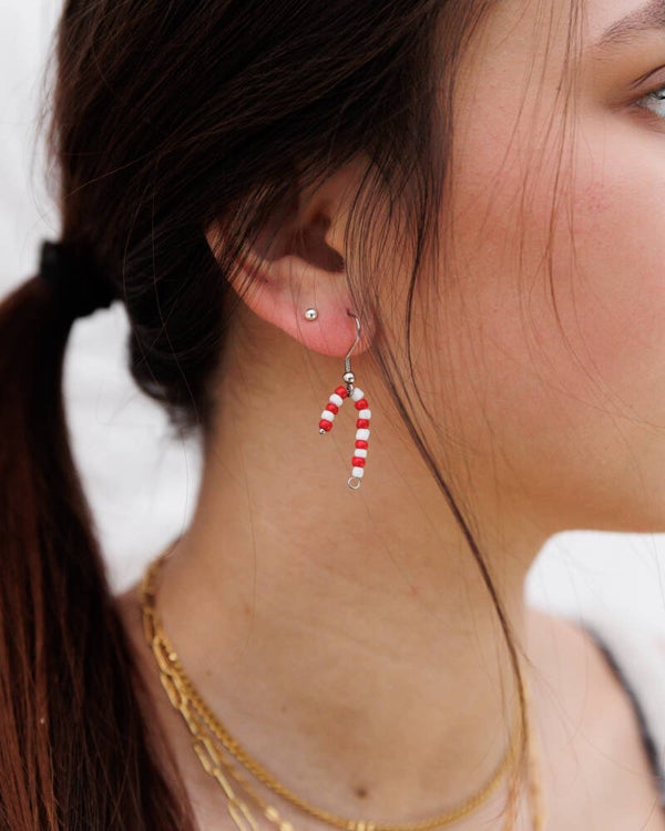 The centre point of our Candy Cane collection: The Candy Cane earrings! These adorable candy canes make for some super sweet holiday earrings and can be made with gold & silver hardware!