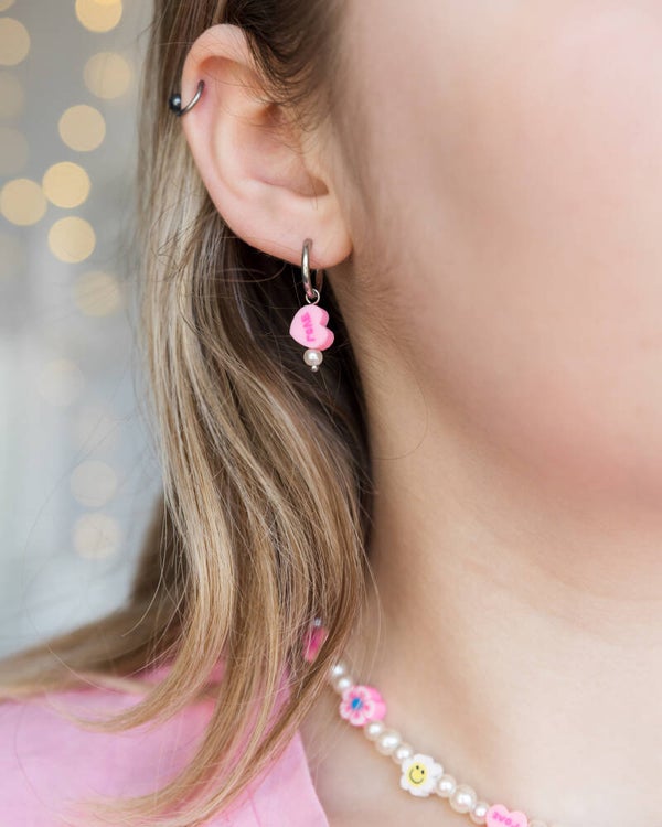 These heartbreaker earrings are the cutest way to spice up an outfit! Made with a polymer heart and a tiny little pearl it is a must have to your earring party!