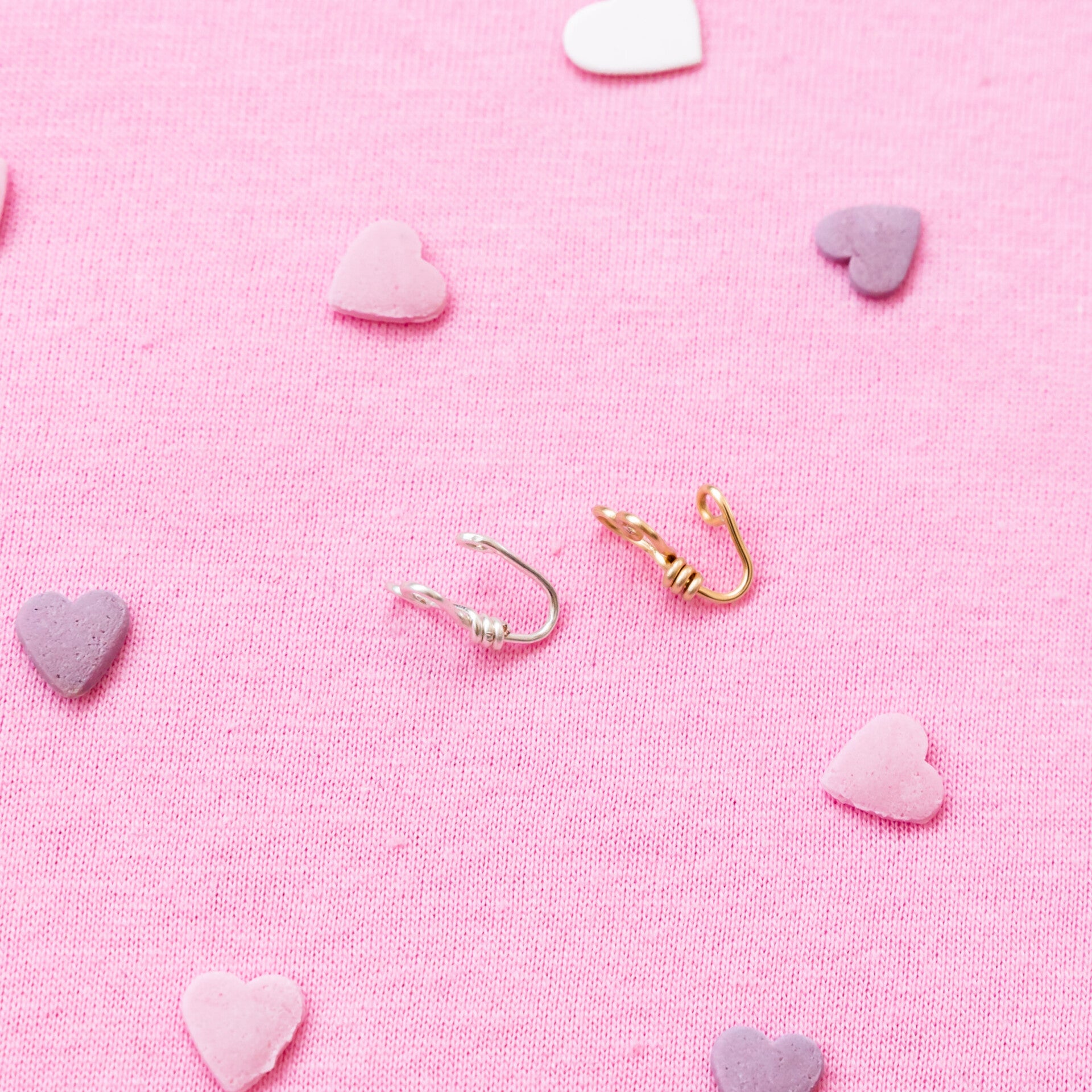 A total new release in our collection: Nose cuffs! In our valentine spirit we had to make these little hearts! These handcrafted cuffs can be made with both gold & silver wire. So get yours now, just in time for cuffing season!