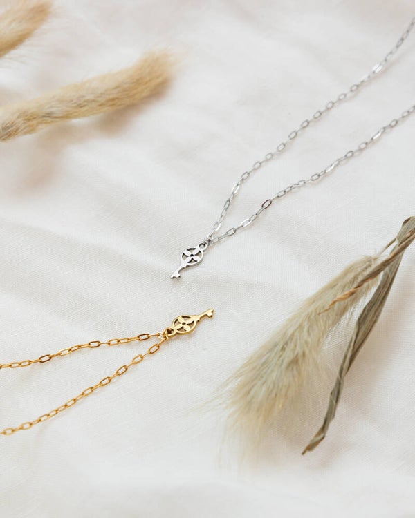 The Key necklace is an add-on to one of our bestsellers: The Locked Necklace! These two necklaces are also available as a set! But The Key Necklace by itself is already gorgeous! Handcrafted with a very delicate chain, it's perfect as a middle/2nd necklace in your stack! Made with stainless steel materials and available in both gold & silver!