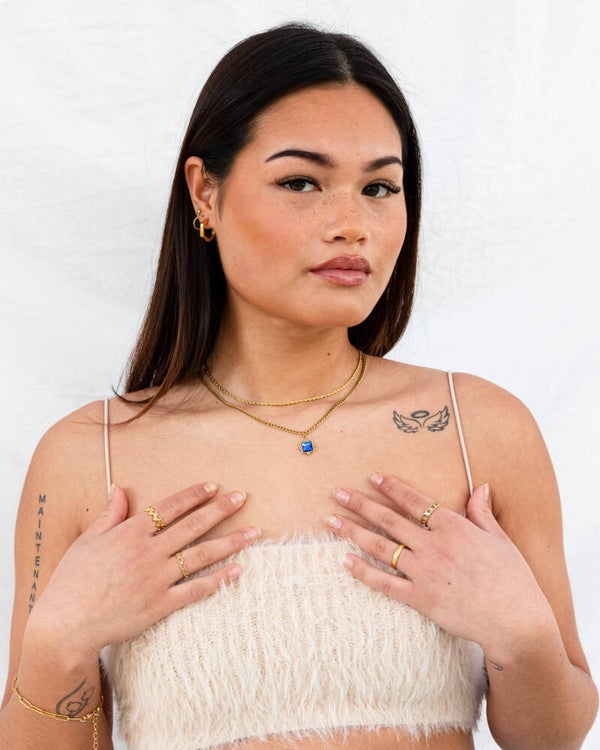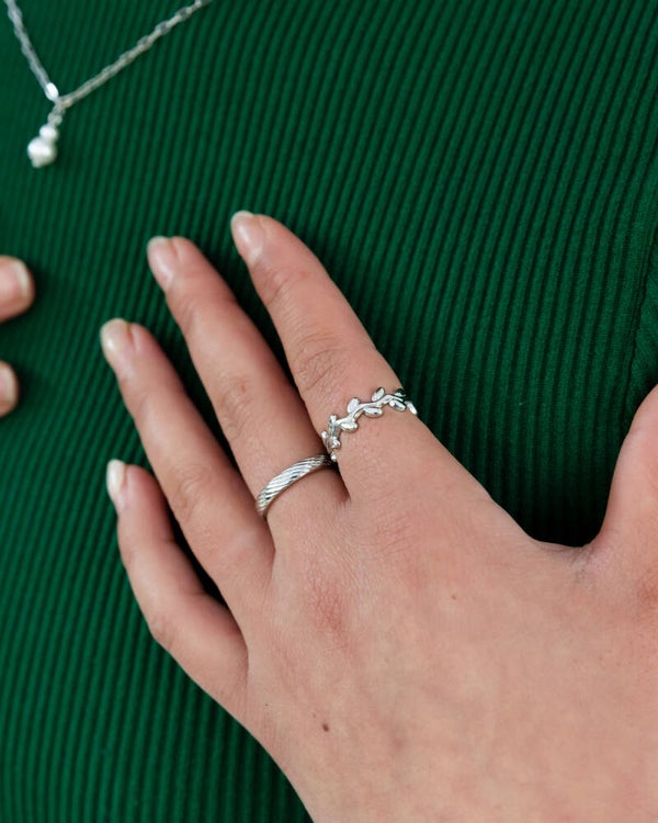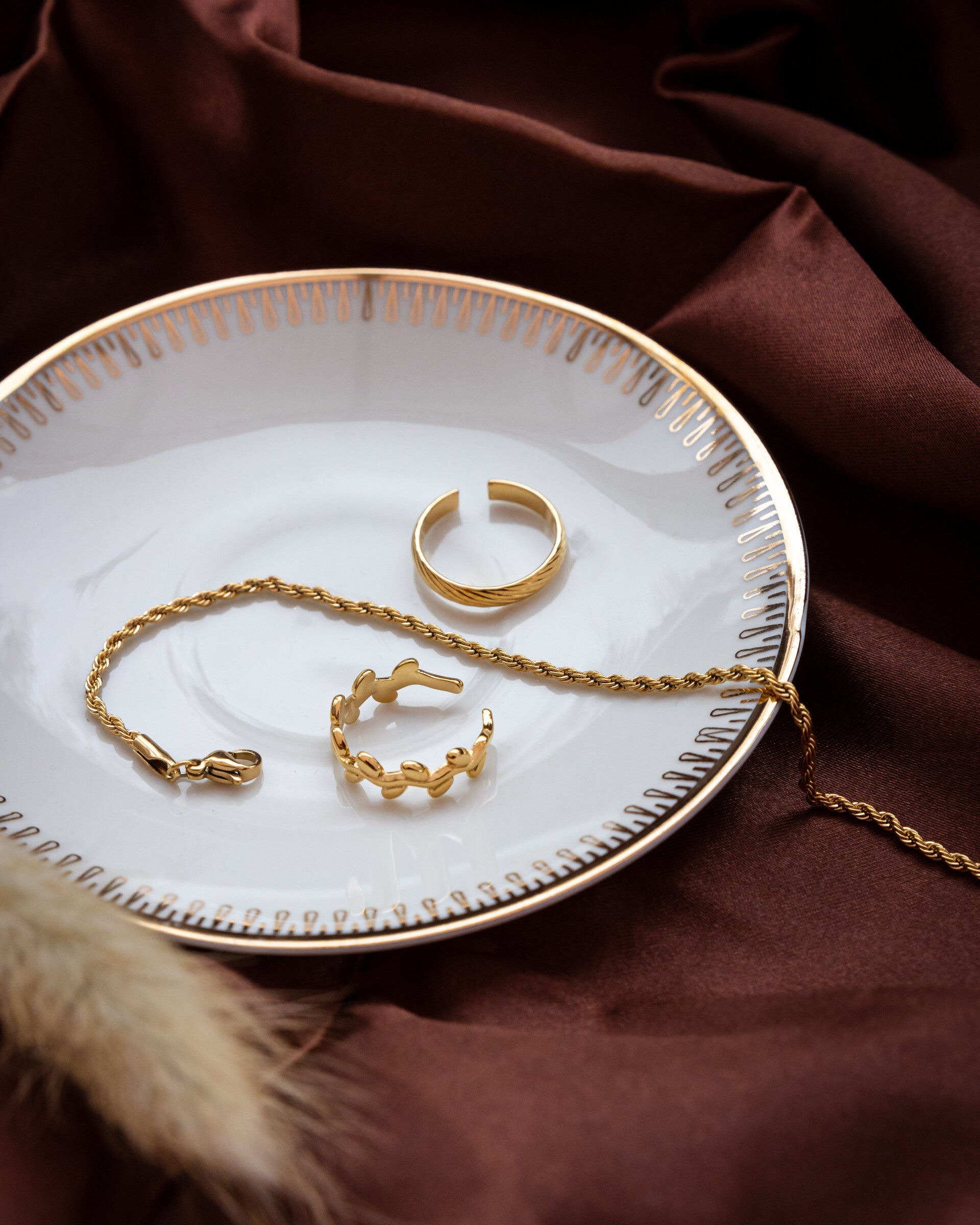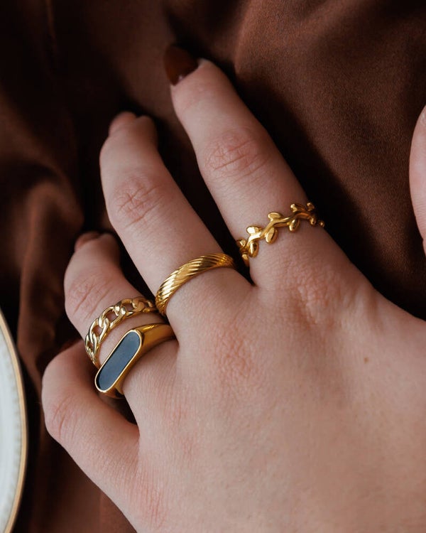 The Esmé ring is a beautiful adjustable ring that resembles a floral wreath! One of our personal fav designs and of course made with stainless steel materials! Available in both gold & silver!