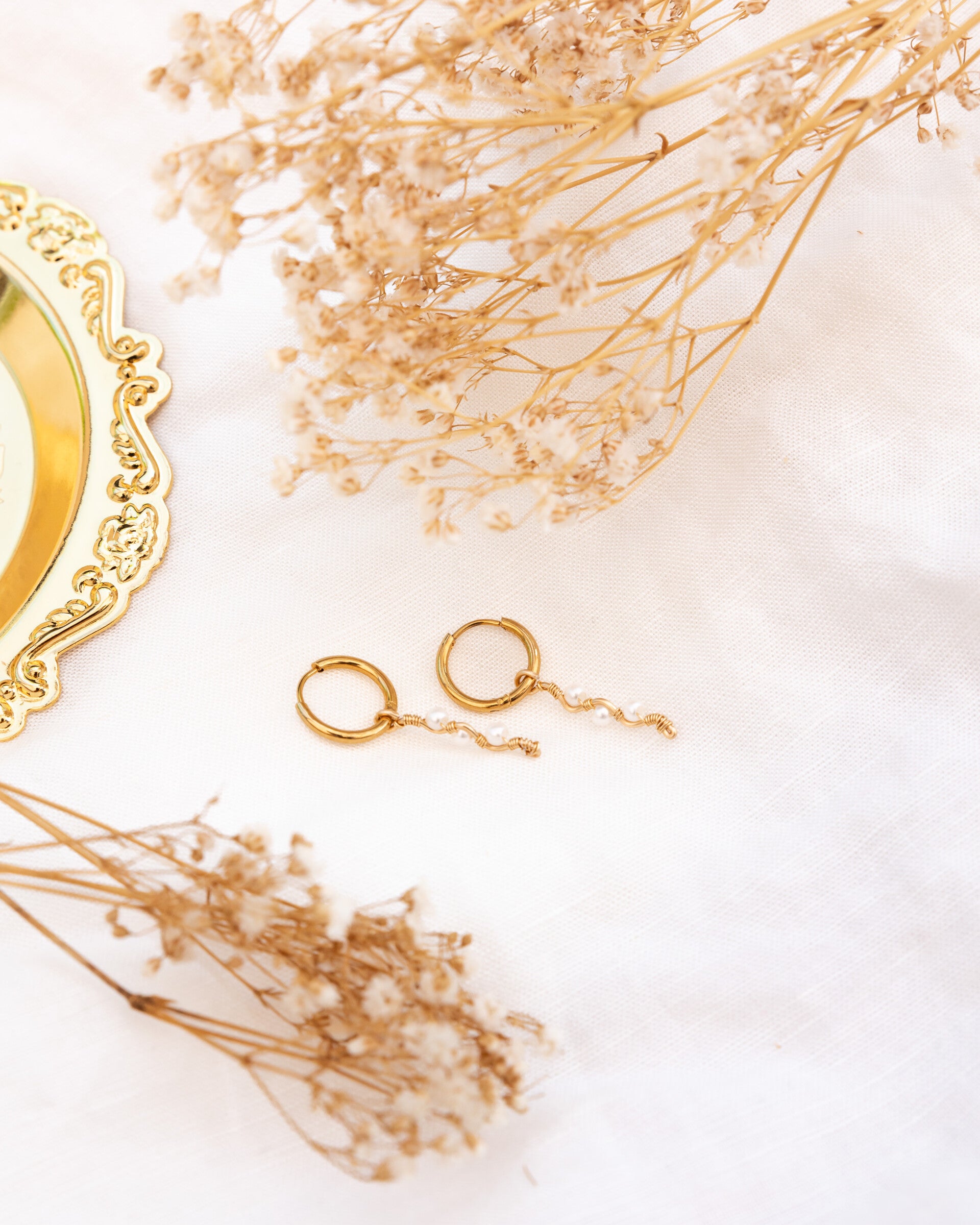 These gorgeous pearl earrings have been waiting to drop for months! Fully handcrafted with wire and beautiful pearls, hanging on a stainless steel & hypoallergenic earring! What could you want more?