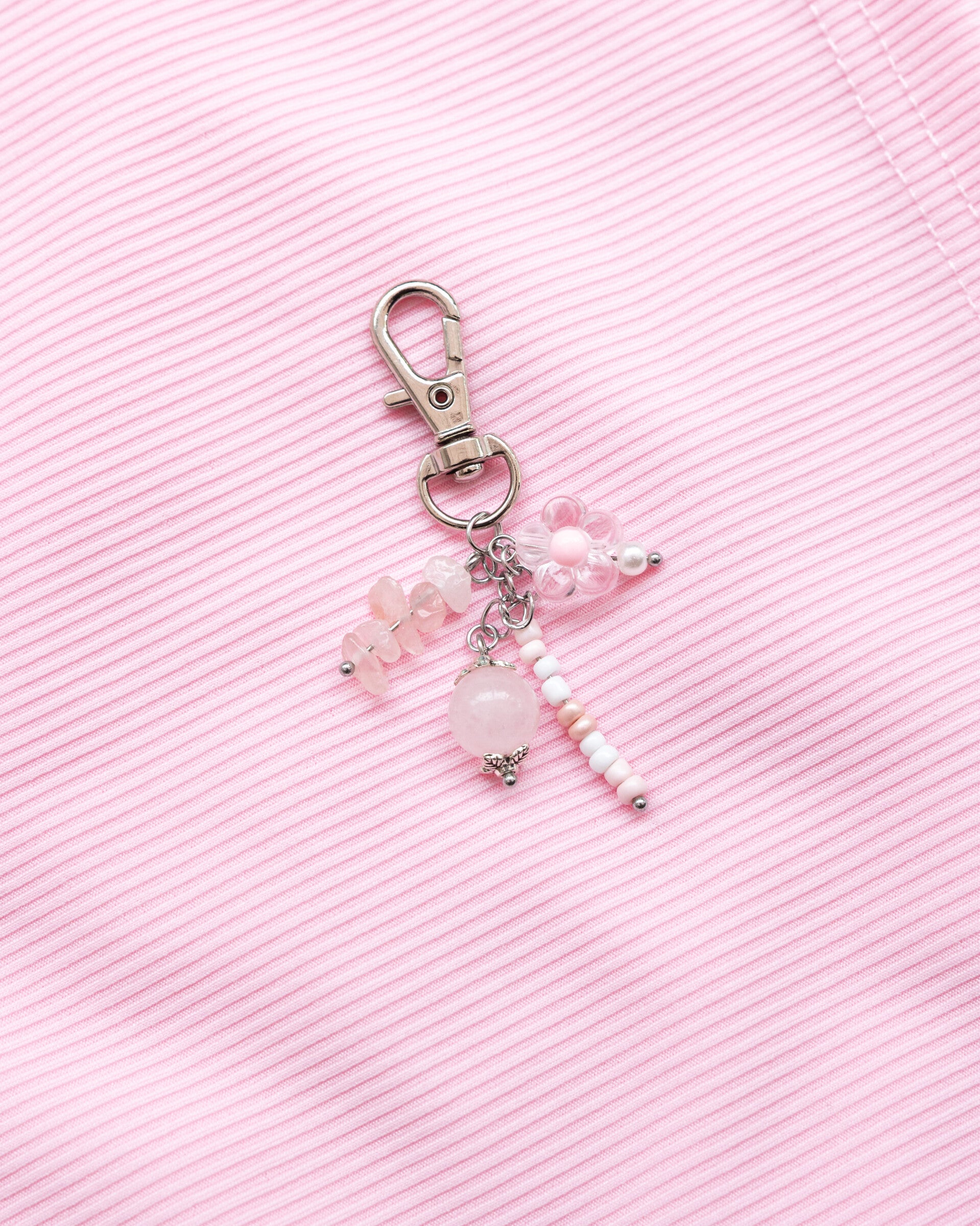 Looking for a pink add to your keys or bag? This pink keychain can certainly help with that! Made with a pink flower, natural & round rose quartz and multiple shades of pink beads! Not your thing? We have lots of other colorful keychains available in this collection!
