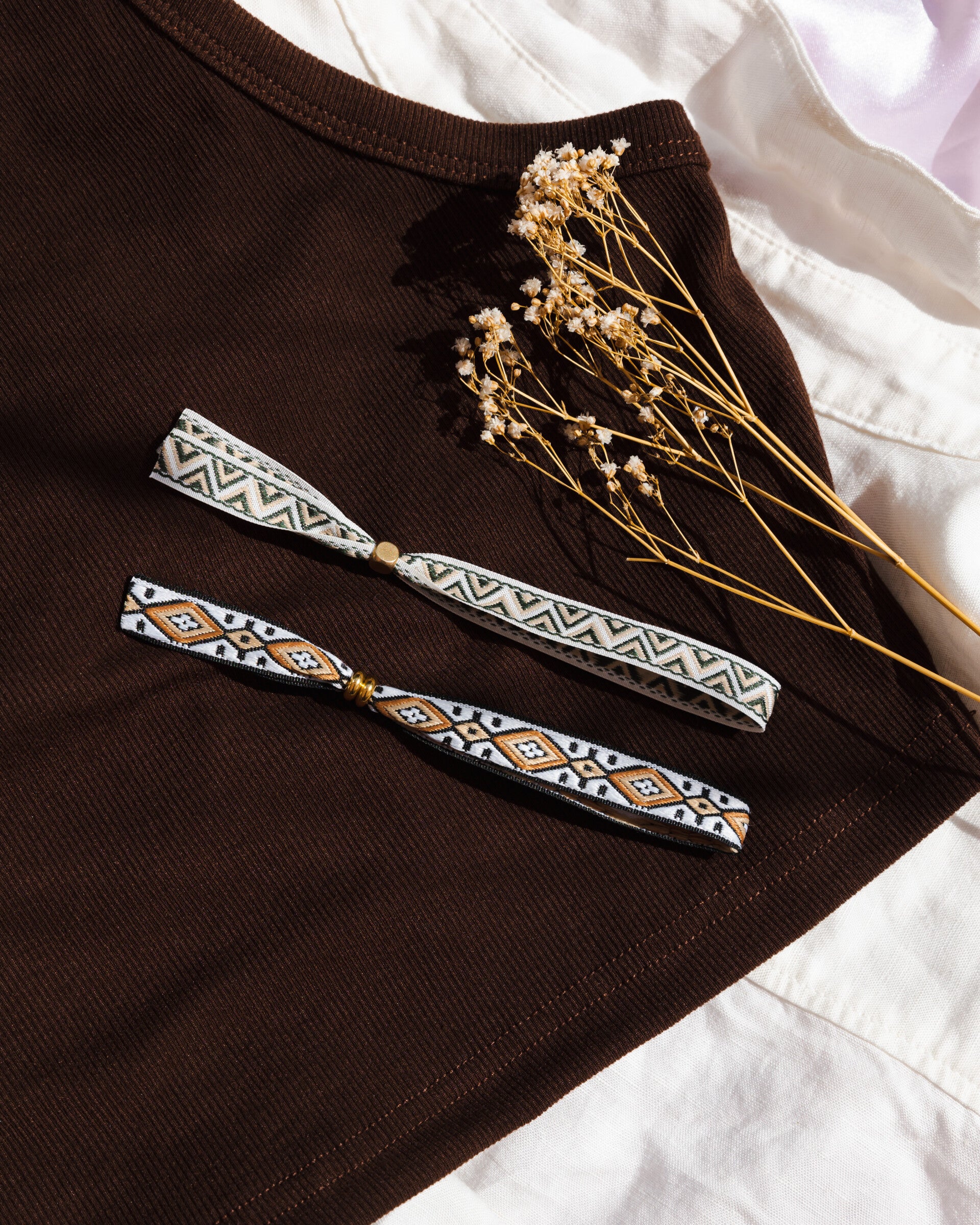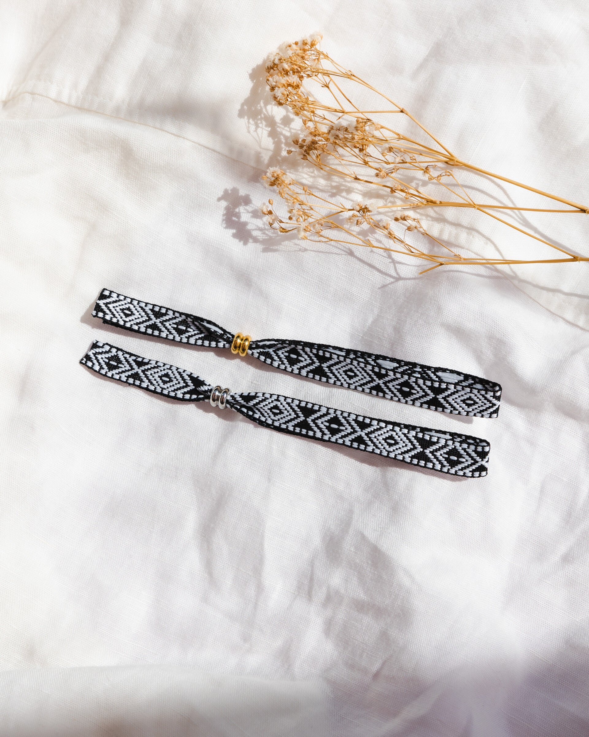 These ribbon bracelets are the ultimate summer must have! Either you wear them to your favourite festival or holiday destination, They will spice up any outfit! Besides that they will also be the easiest bracelets to put on! Just slide the bead down to enter your wrist and tighten as you please, and voila!