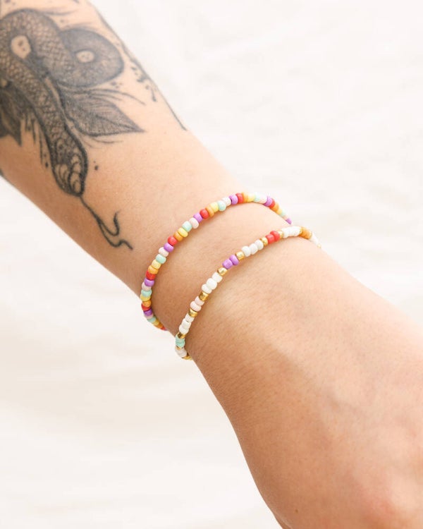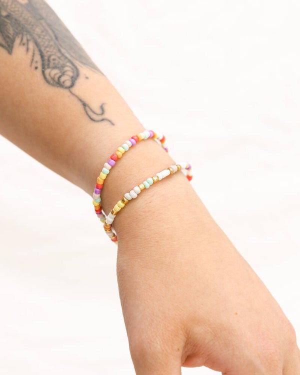 After our bestseller nude beaded bracelet set from last winter we had to make a rainbow summer version! This adorable set will be made custom to size and is available with gold & silver hardware/beads