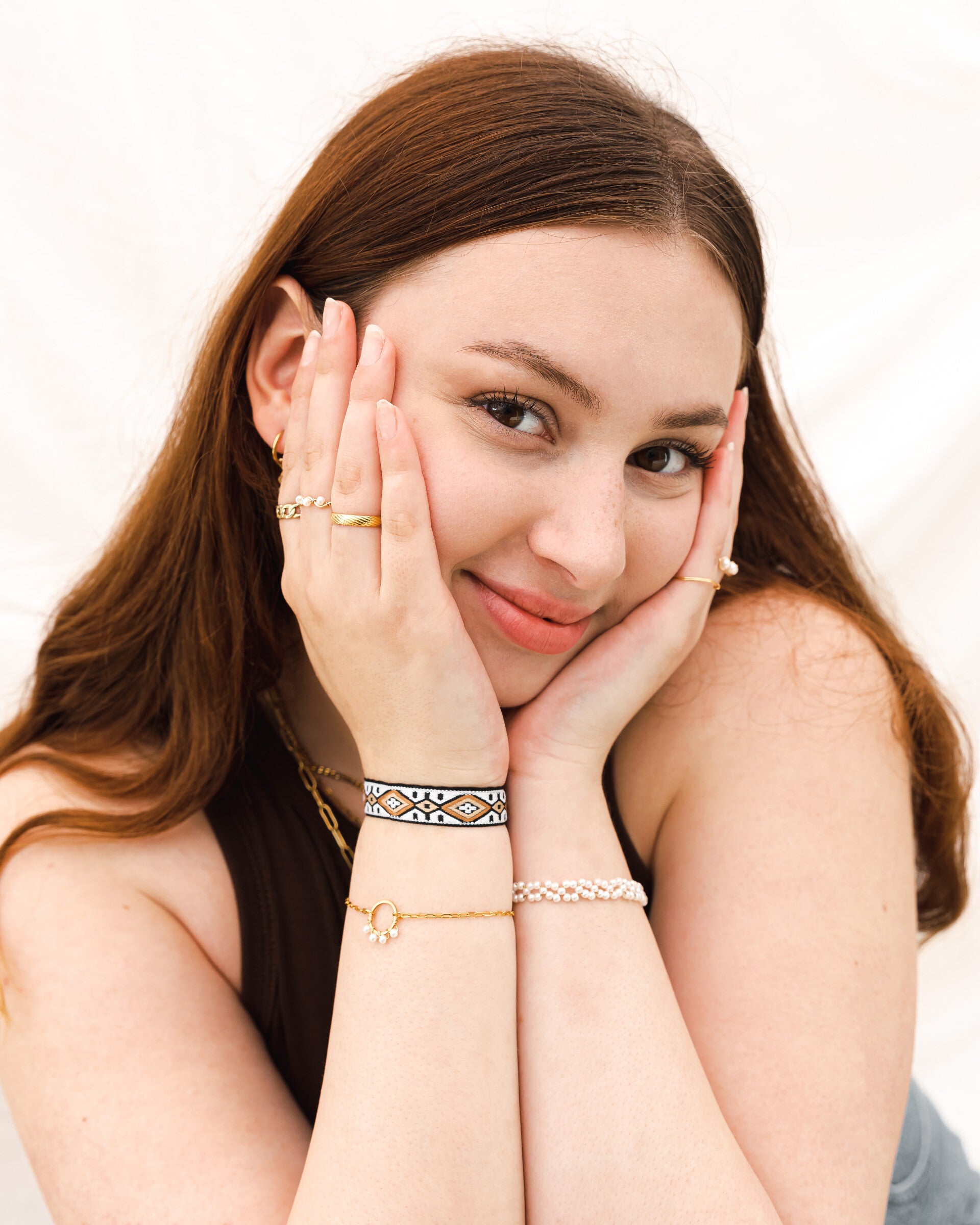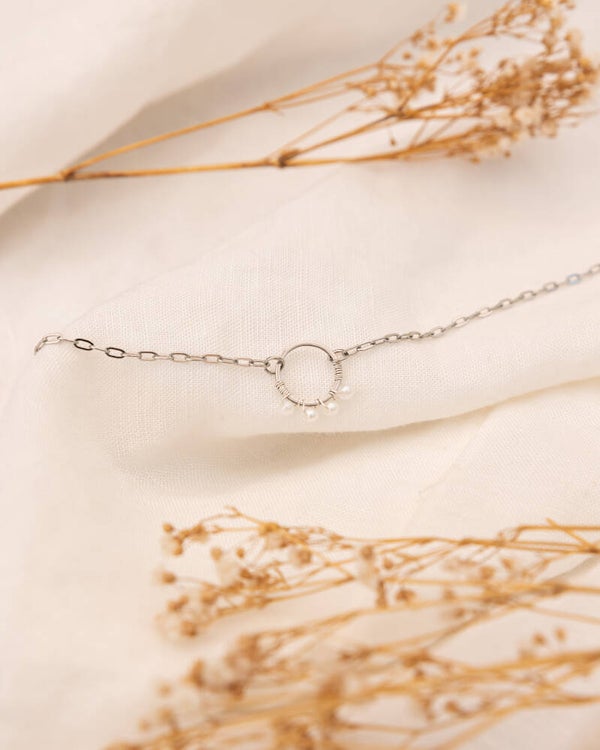 The Rosalia bracelet is the more fancier version of '' The Rosie bracelet'' Decked out with pearls on your wrist to make your bracelet party even better! Fully handcrafted with a delicate chain and stainless steel hardware. Want more pearls on the circle or in a different location? Send us a message through social media for the possibilities!
