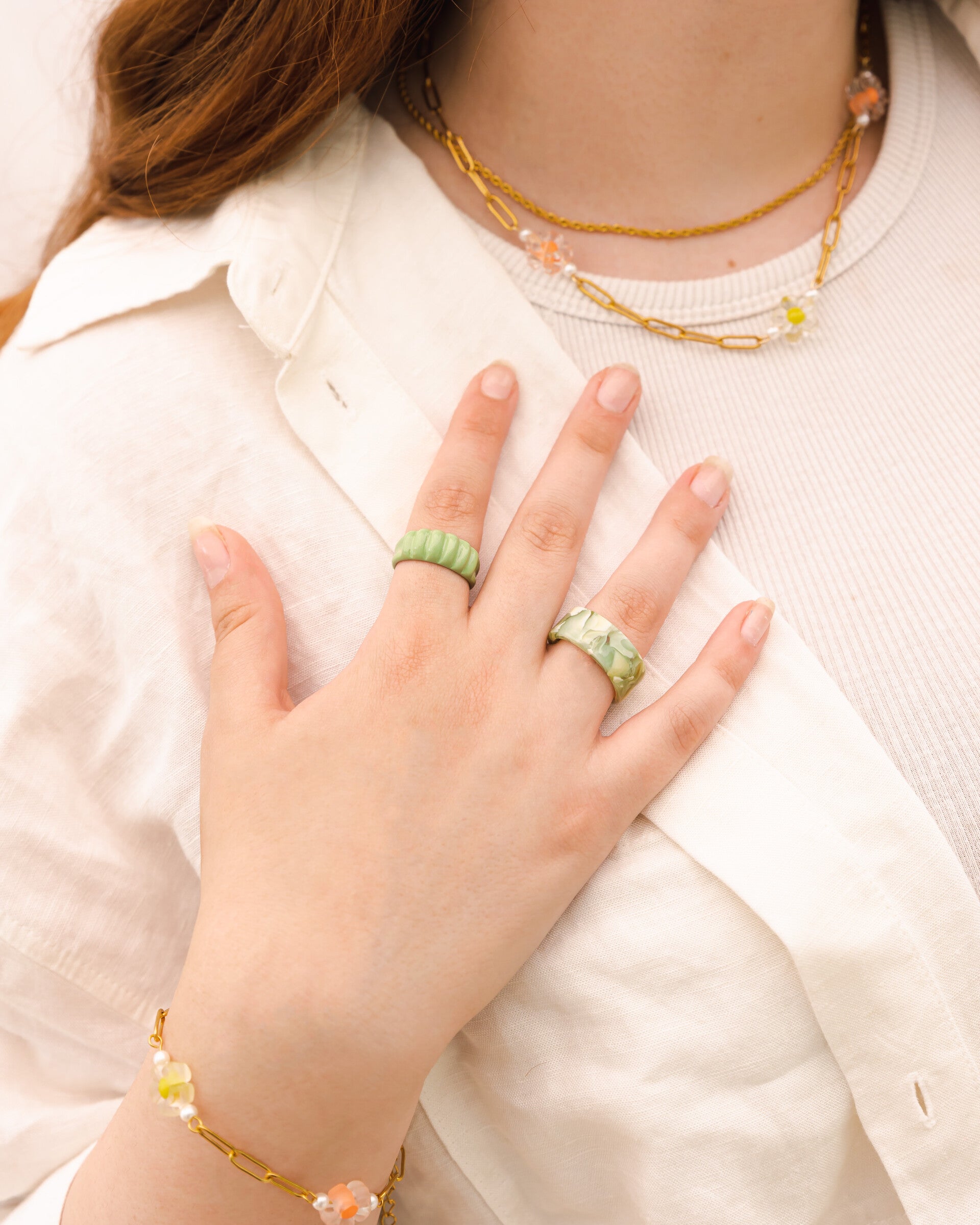 This bold colorful candy ring is available in two colors and perfect for summer! The lime green ring can be perfectly matched with our Resin ring!