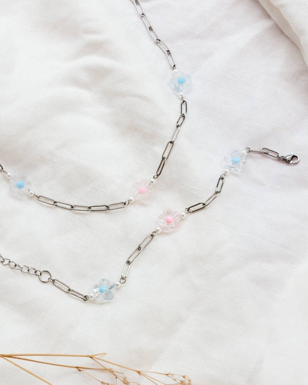 The perfect jewelry set for summer? Is a custom made one! Design this set yourself by choosing out of 6 pastel colors in clear/matte, all combinations possible! Also still looking for matching earrings? Look for: ''The Daisy earrings''