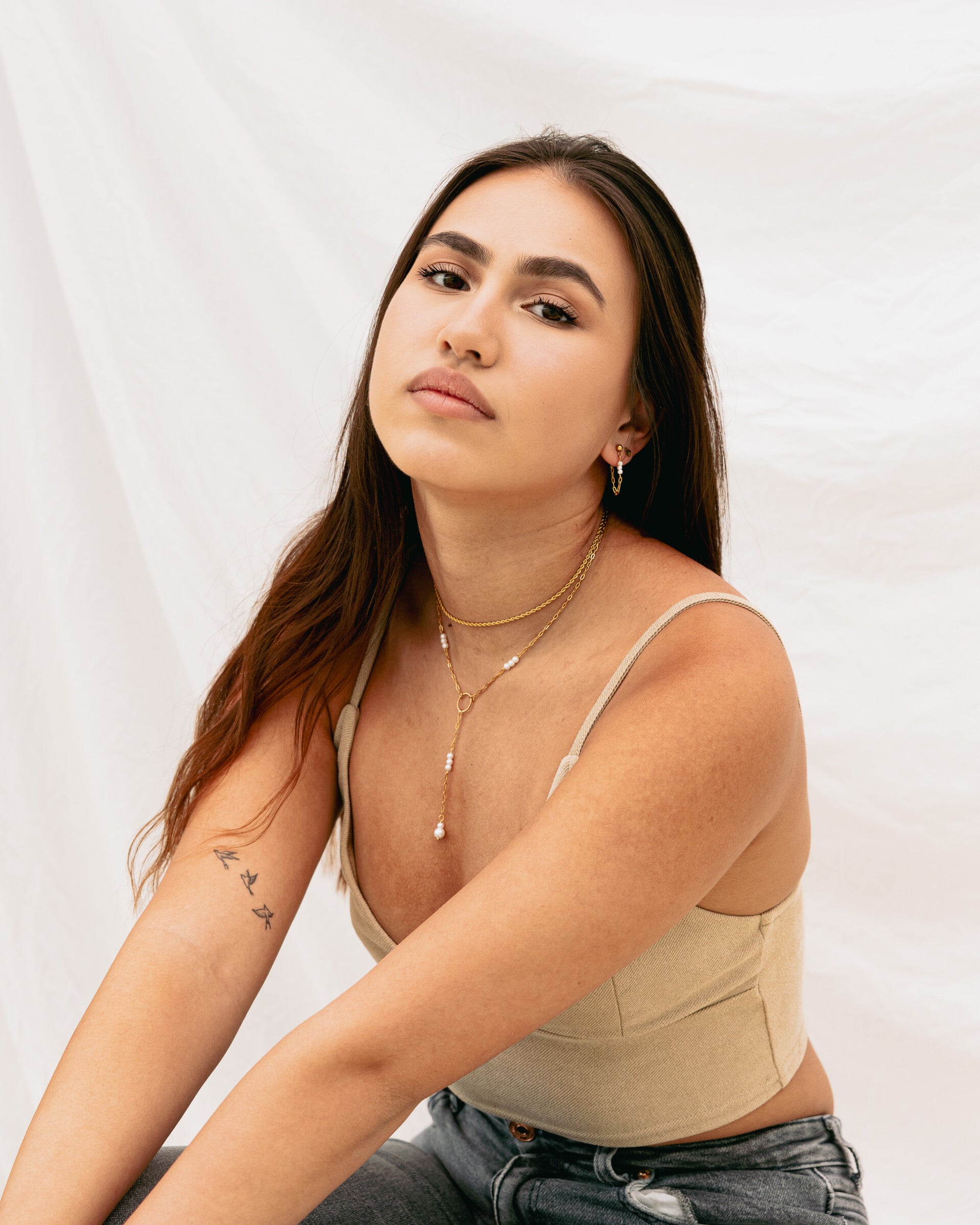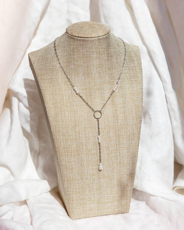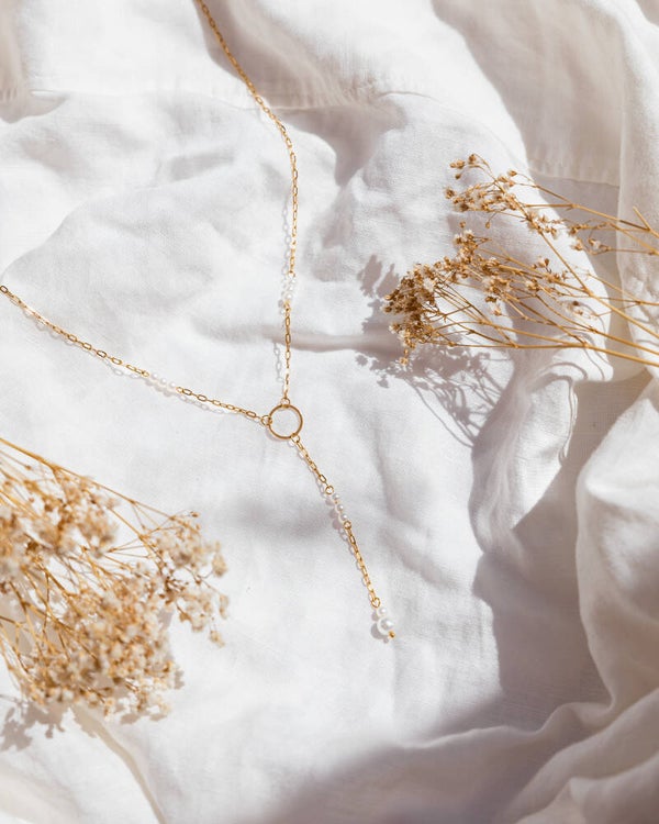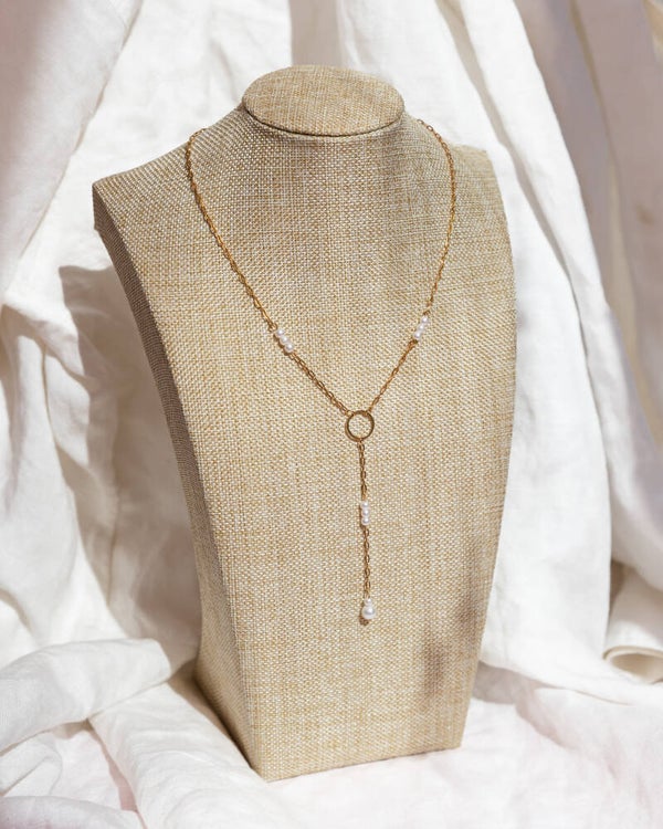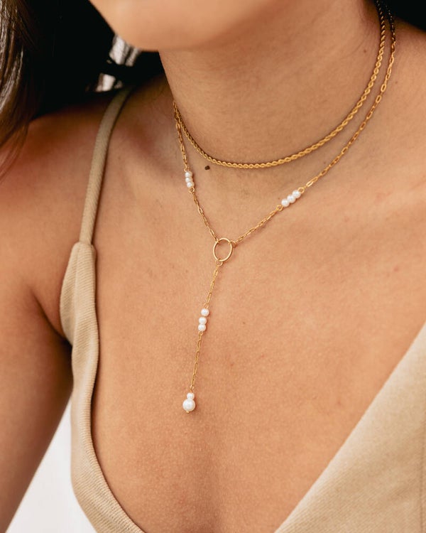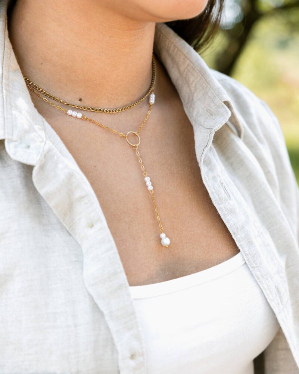 The Eleanor necklace is the perfect pick for a night out or even a wedding! Wear this faux body chain with an open cleavage top for a super classy look! This handmade pearl necklace is crafted with stainless steel materials and will make your outfit look expensive! Looking to match? Check out ''The Taylor earrings''!
