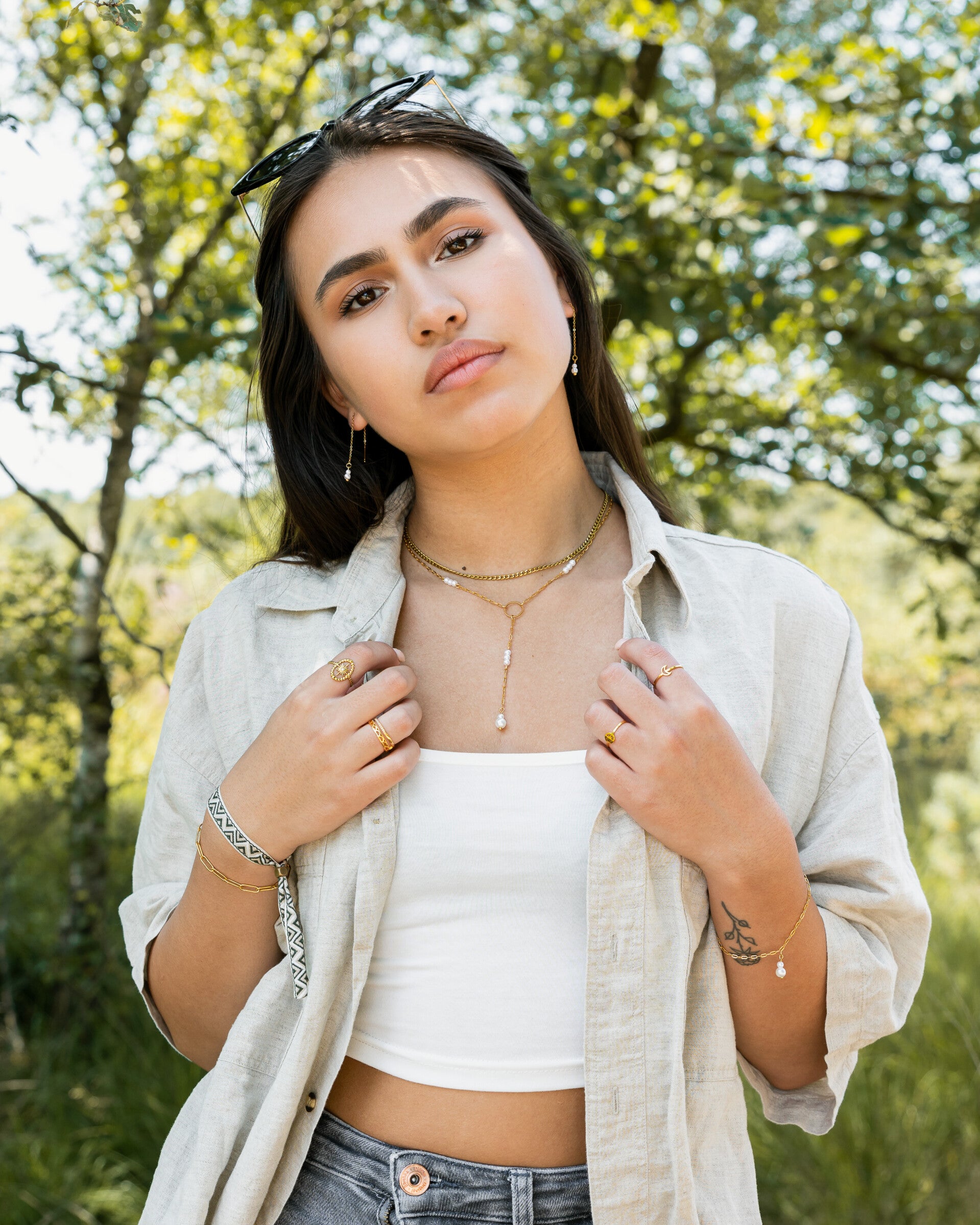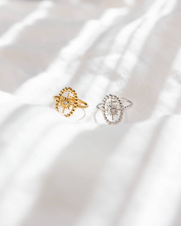 This gorgeous ring is a true statement piece. Easy to match with any other delicate or pearl rings! The Kyra ring is made with stainless steel, fully adjustable and has a tiny sparkly stone in the centre! Available in both gold & silver