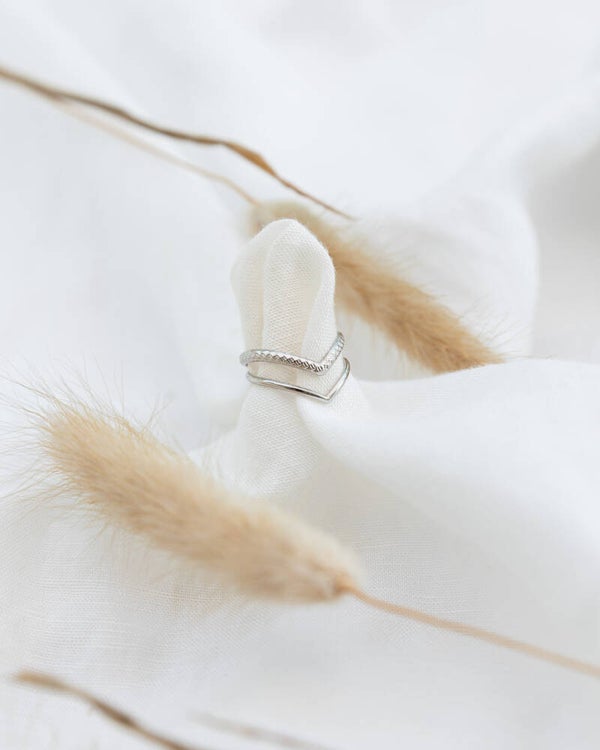 The Zahara ring has a trendy triangle shape! With an engraved pattern on the top, and a smooth one on the bottom. This stainless steel ring is fully adjustable and can be worn two ways. Choose your favorite! Available in both gold & silver