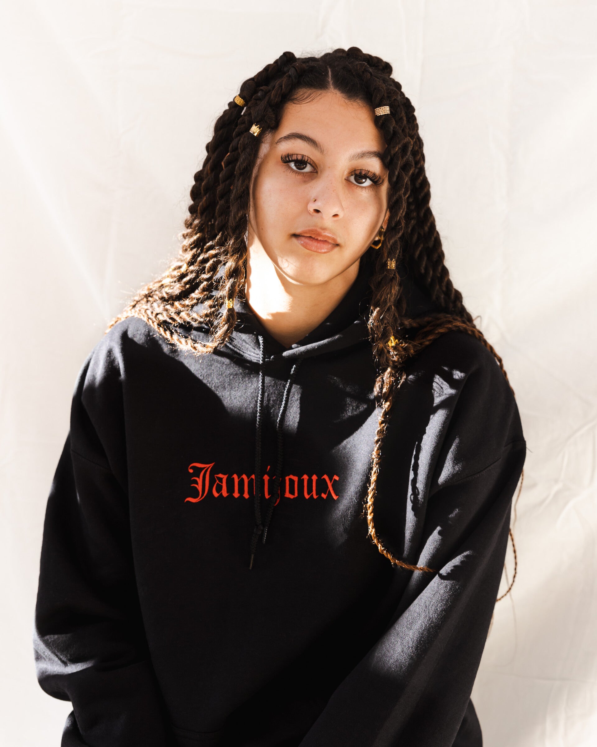 The Jamijoux hoodie is a classic design respresenting our brand! This design can easily be customized to any preffered color!